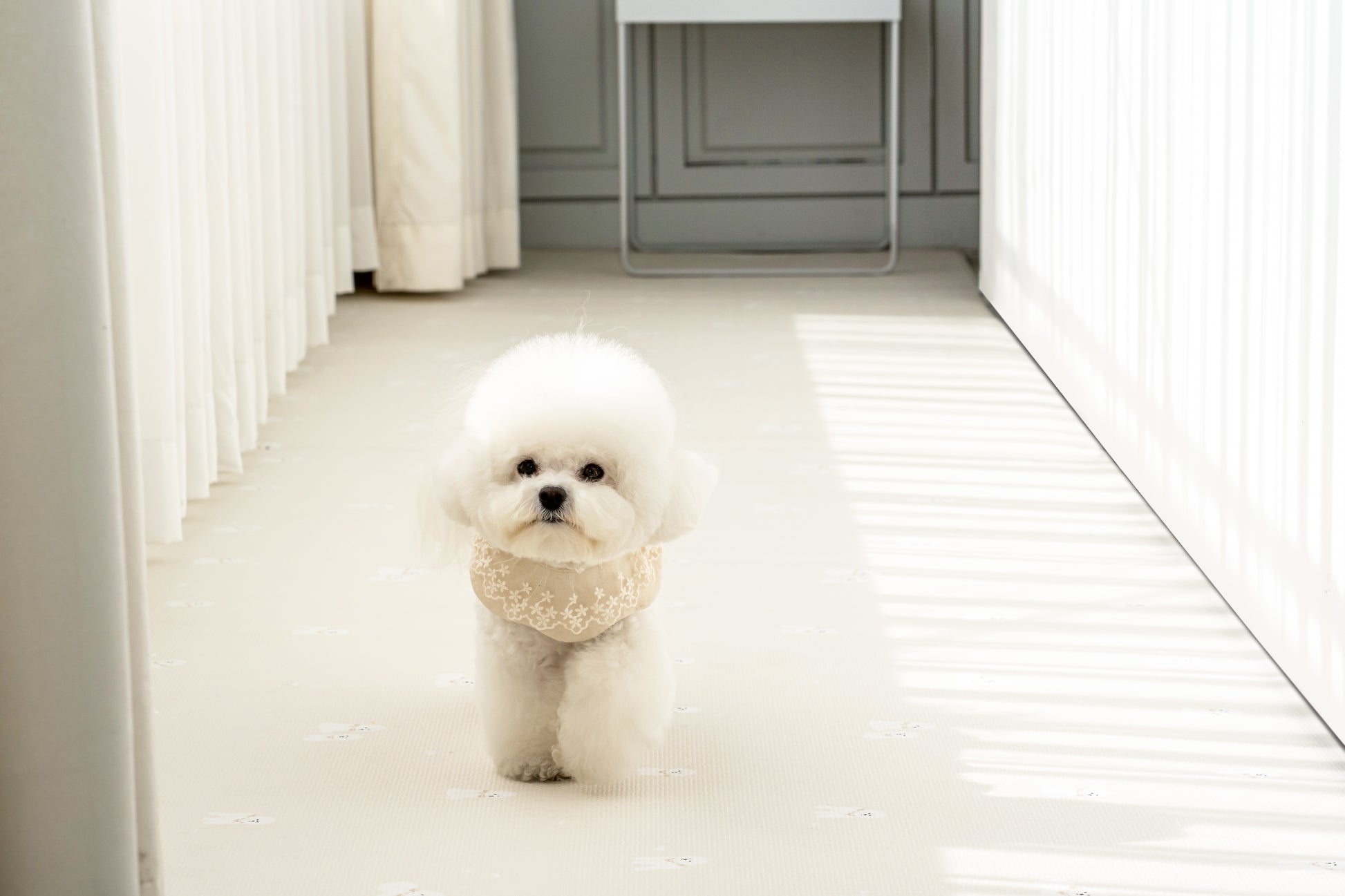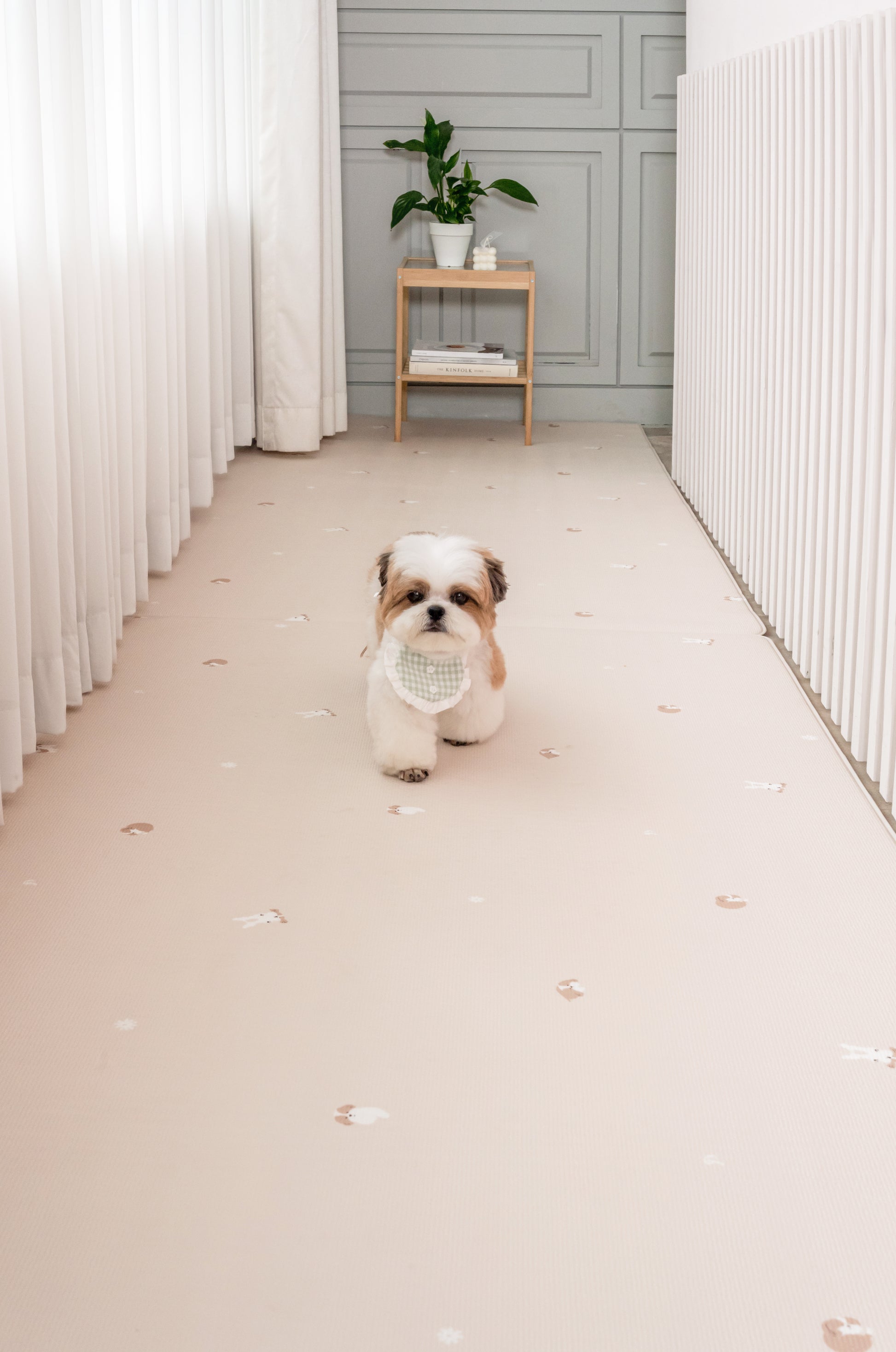 Pupping is a professional pet product brand from Korea. It provides our pets a safe environment to run around safely. Crafted with a special seven-layer construction, it offers superior shock absorption and noise reduction, providing a cushioned surface that minimizes joint pressure during play and rest. The mat's anti-slip design ensures stability, preventing slips and falls, and its water resistant feature protects your floors from spills and accidents.